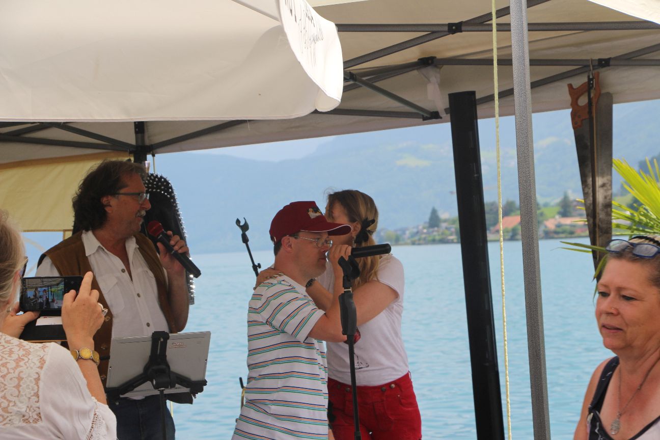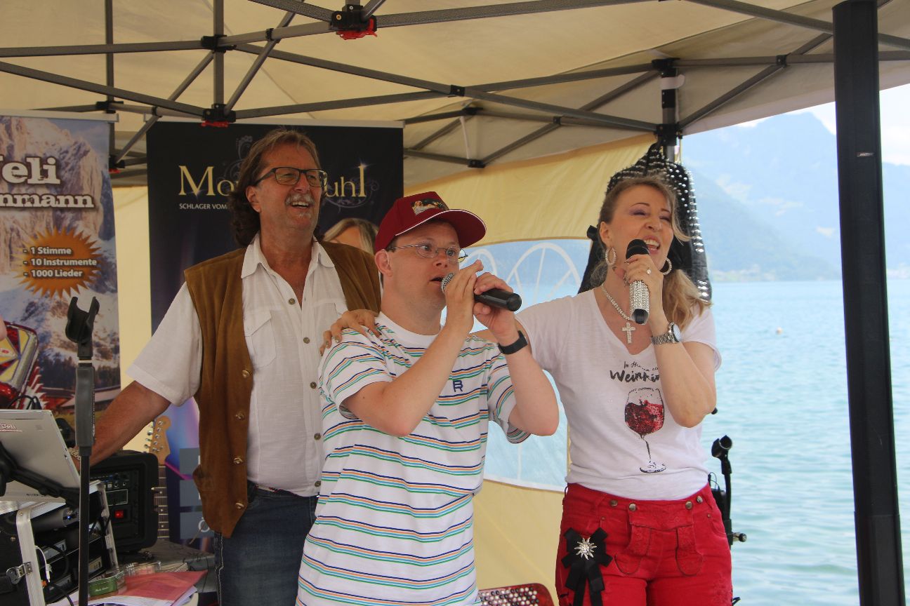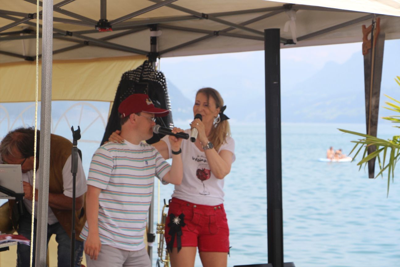 Hinzu kamen die Auftritte von und Sarah-Jane und Leonard. Sarah-Jane ist eine Powerfrau voller Lebensfreude, stimmgewaltig und eine Klasse für sich. Ich freute mich sehr, dass beide Zeit hatten, meinen Abend mitzugestalten. Im weitern war die Weidliband aufgetreten, eine ganz besondere Band. Eine Formation mit beeinträchtigen Menschen, die ihre Musik auf eine ganz andere Ebene bringen. Ich habe sie schon einige Male erlebt und freute mich sehr, dass sie meinem grossen Jubiläum noch einen zusätzlichen, speziellen Touch verliehen hatten.